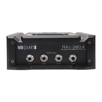 MB Quart Reference series four channel car audio amplifier featuring innovative sound quality and power technology. The RA1-280.4 is a 280 watt car audio amplifier. Reference amplifiers feature DC Sensing to allow any amplifier to be easy integrated into an OEM system by simply adapting a RCA cable from the source unit.