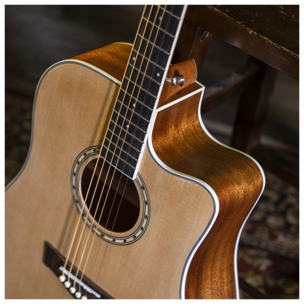 - Gorgeous solid spruce top with mahogany back and sides for premium tone