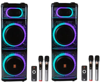 2 MR DJ BEVERLY HILLS 55000W Dual 12” Bluetooth Rechargeable Party Speaker Ring Partylights 2 Wireless Mic TWS Portable DJ PA System