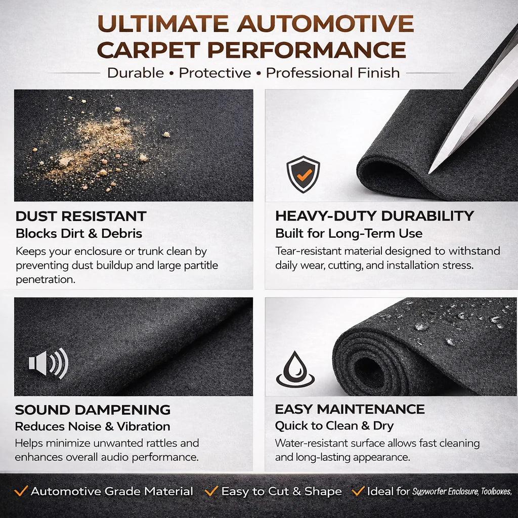 Whether you're upgrading your trunk, building a custom subwoofer enclosure, or finishing a DJ speaker box, the Absolute C3BK carpet provides a clean, professional OEM-style finish.