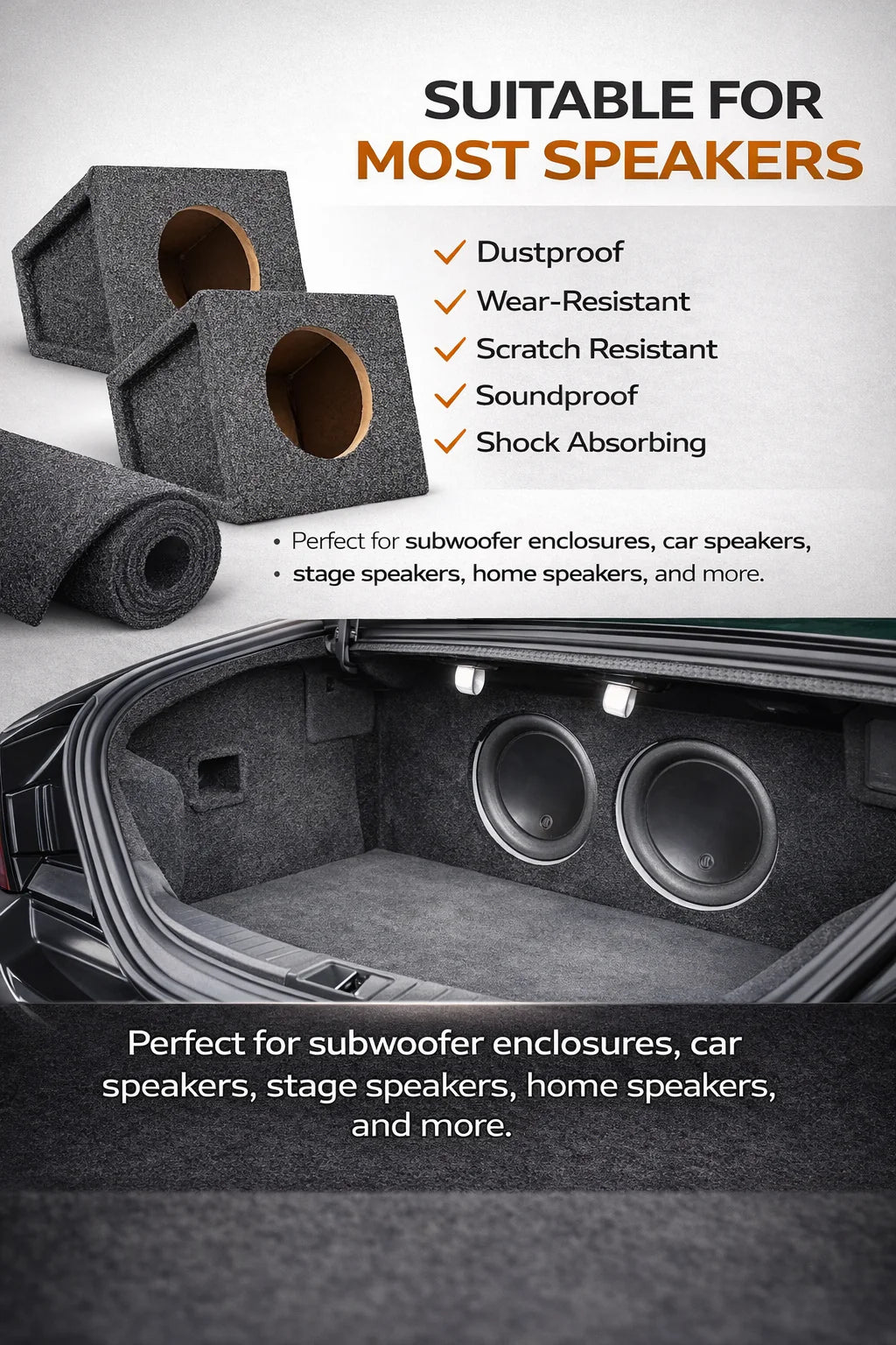 Designed specifically for car audio applications—ideal for subwoofer enclosures, speaker boxes, amp racks, and custom installs.