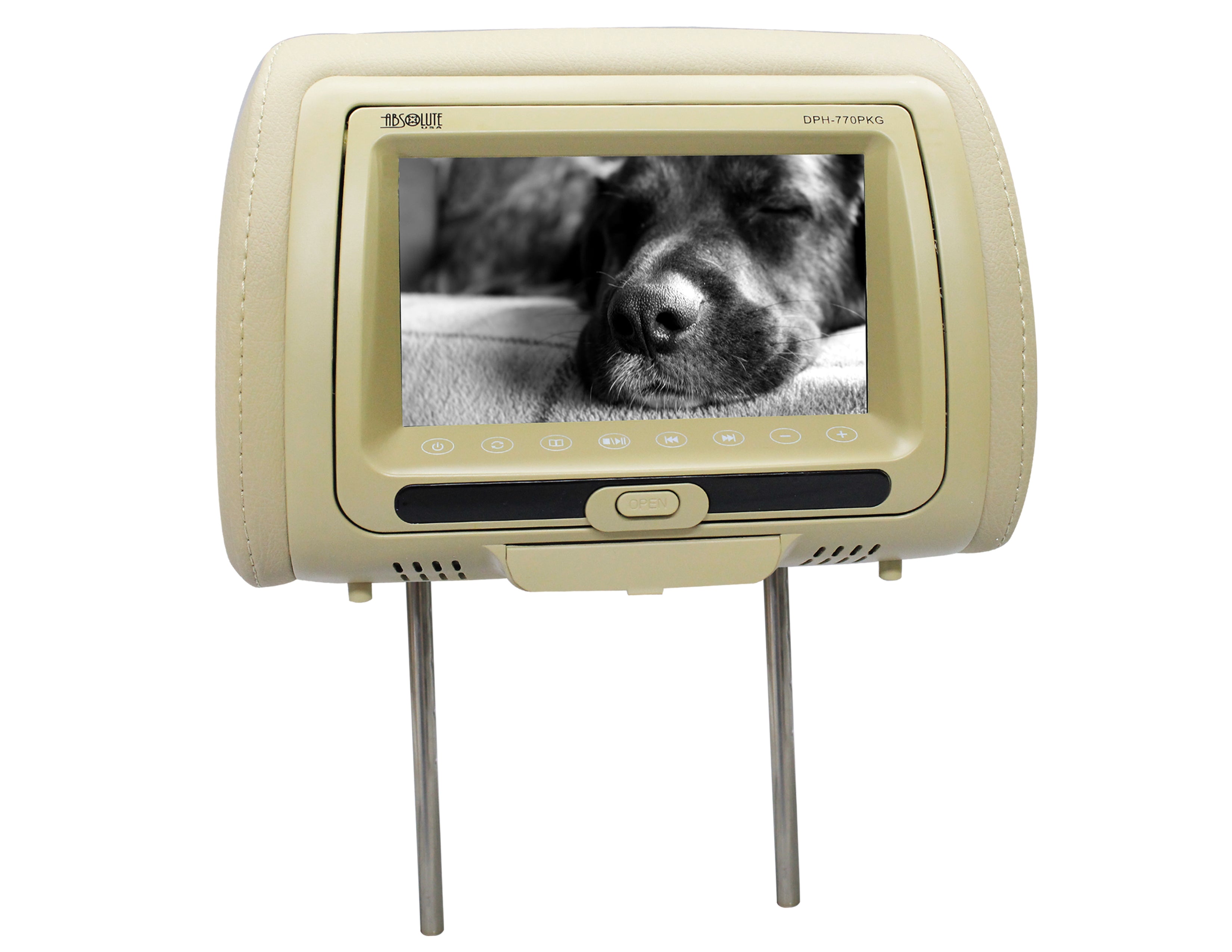 Absolute USA DPH-770PKGC 7.5-Inch Pair of Cream Tan Complete Headrest Monitors Includes one headrest with a built-in DVD/USB/SD multimedia player and one headrest monitor (display only).