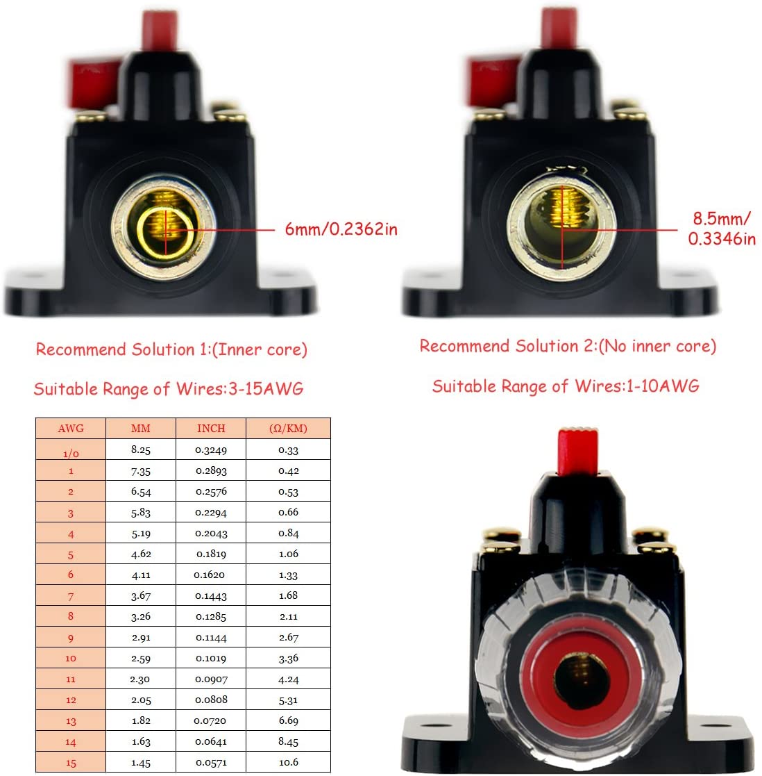 🔌 4/8 AWG Compatibility – Supports 4 AWG or 8 AWG power/ground wiring for flexible installation in car audio systems