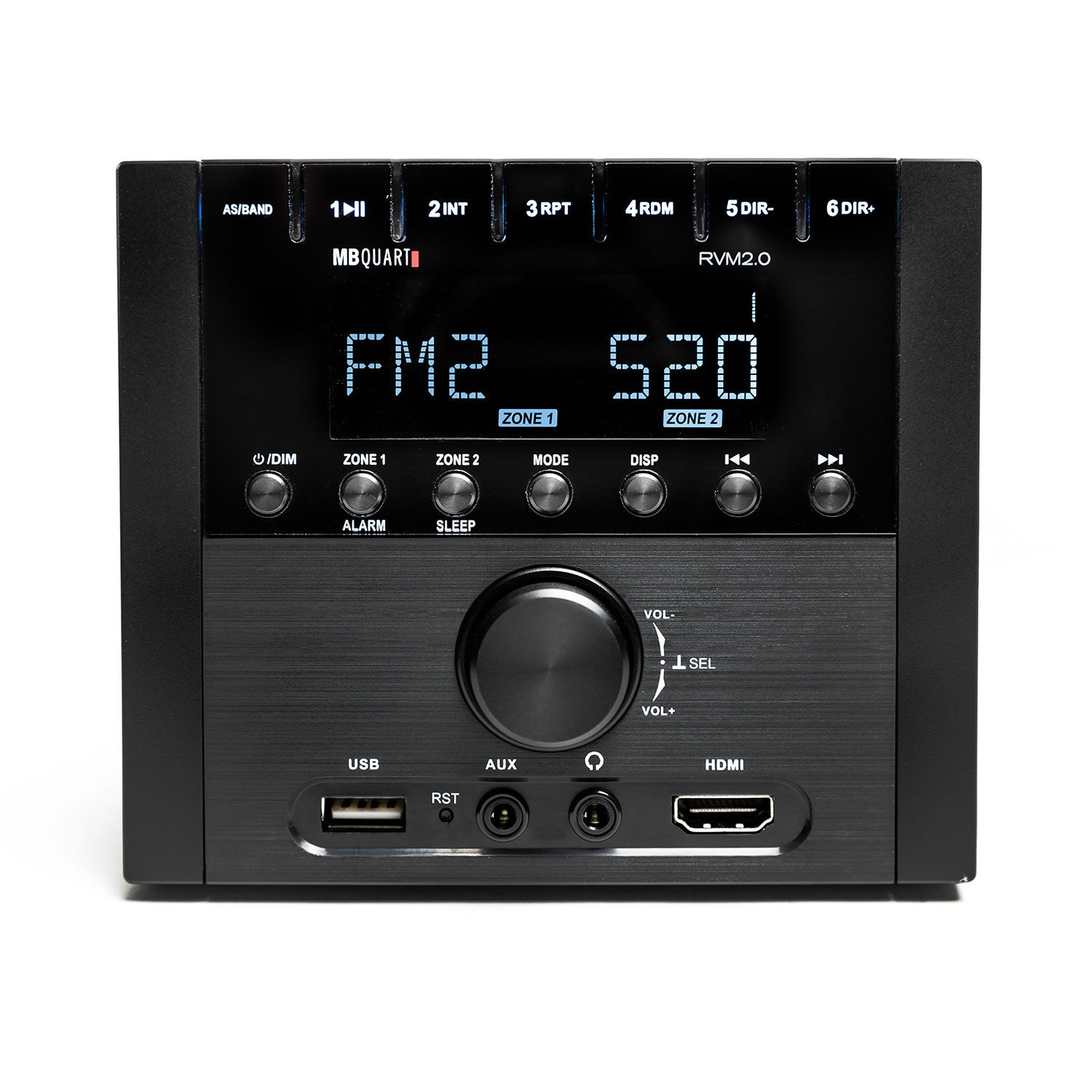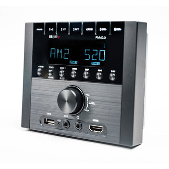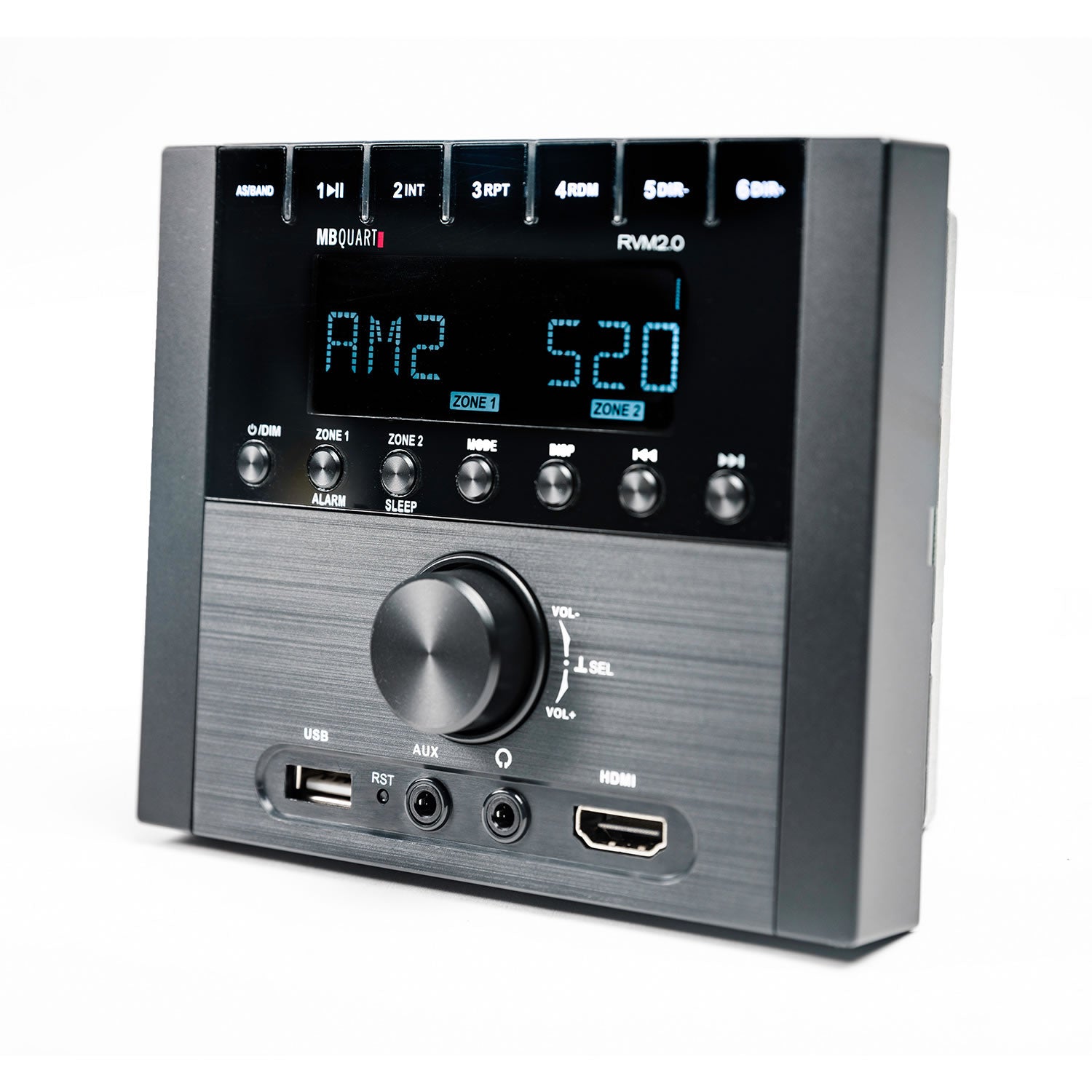 MB Quart RVM2.0 digital multimedia, multi-zone audio control, 160 watt in-dash compact mechless RV source unit with AM/FM and Bluetooth 4.0.