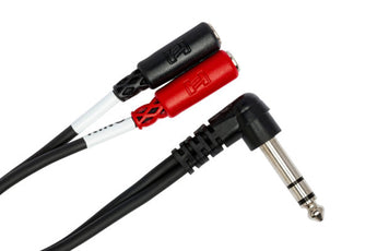 Hosa YPM-523 Stereo Breakout Cable - Right-Angle 1/4-inch TRS Male to Dual 3.5mm TRS Female