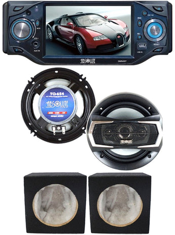 Absolute DMR-455 4.5" In-Dash Single Din Multimedia DVD/CD/MP3 Player – Fully Motorized, High Power 4 x 80W + Absolute TQ-654 6.5" 4-Way Car Speakers 400W + 6.5" Encluser Empty Box