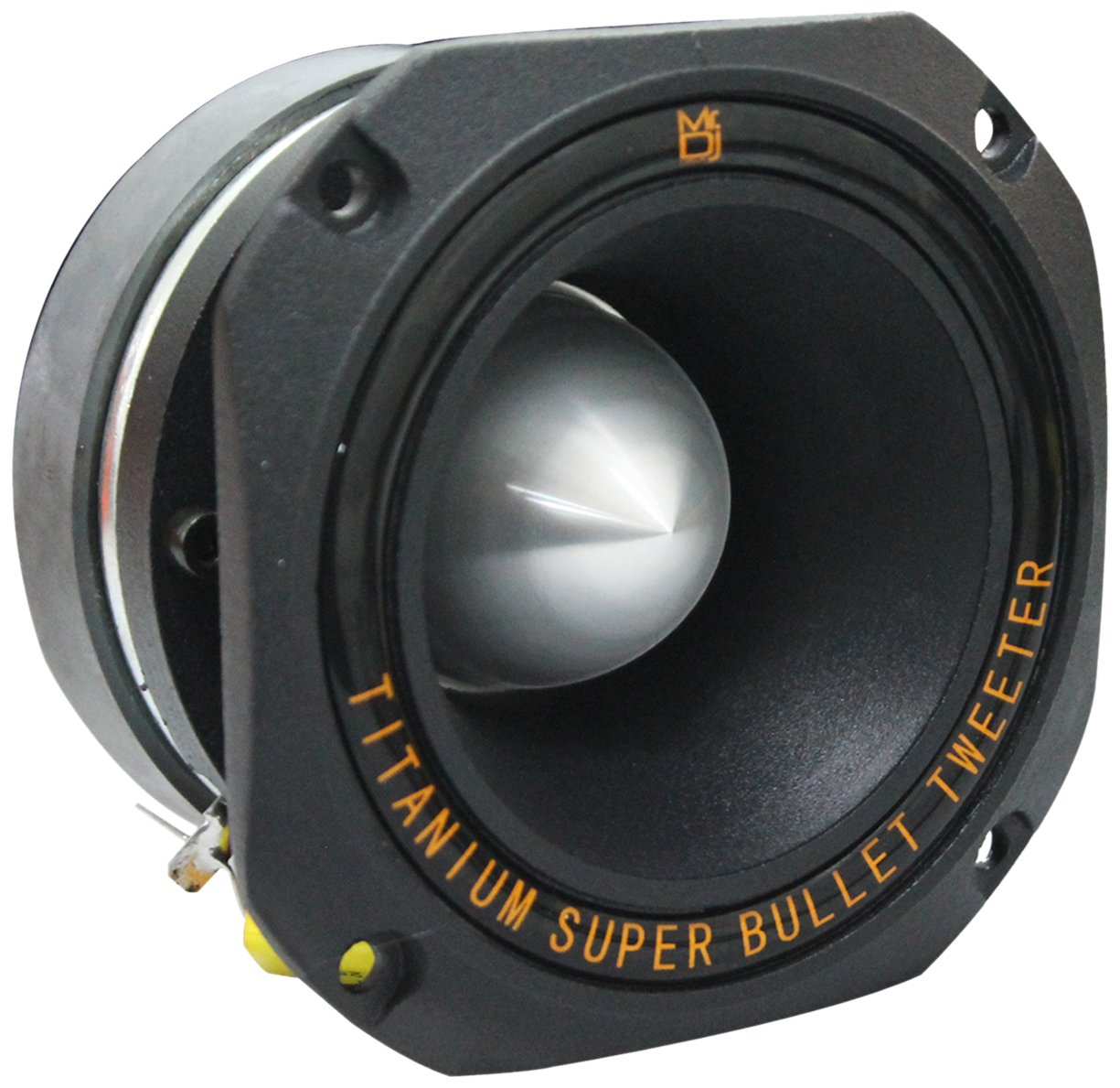 MR DJ HDT1000B 4" heavy-duty titanium super tweeters. MR DJ 4-inch square high compression titanium bullet tweeter features flat sides allowing close side-by-side mounting. It has a high-frequency response of up to 20,000 Hz and a sensitivity of 108 dB at 1W/1m. MR DJ Professional grade super tweeters that can easily handle high frequencies and are meticulously designed these tweeters to sound as good as they look. MR DJ Drivers are all manufactured with close attention to detail and maintain tight manufacturing tolerances necessary to produce a quality product. MR DJ Tweeter Drivers are second to none and feature solid construction and accurate power handling ratings.