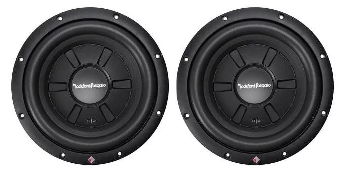 2 Rockford Fosgate Prime R2SD2-12 + 2 Single Sealed Boxes 500W Max 12" shallow mount dual 2-ohm voice coils subwoofer + 2 Single Sealed Boxes