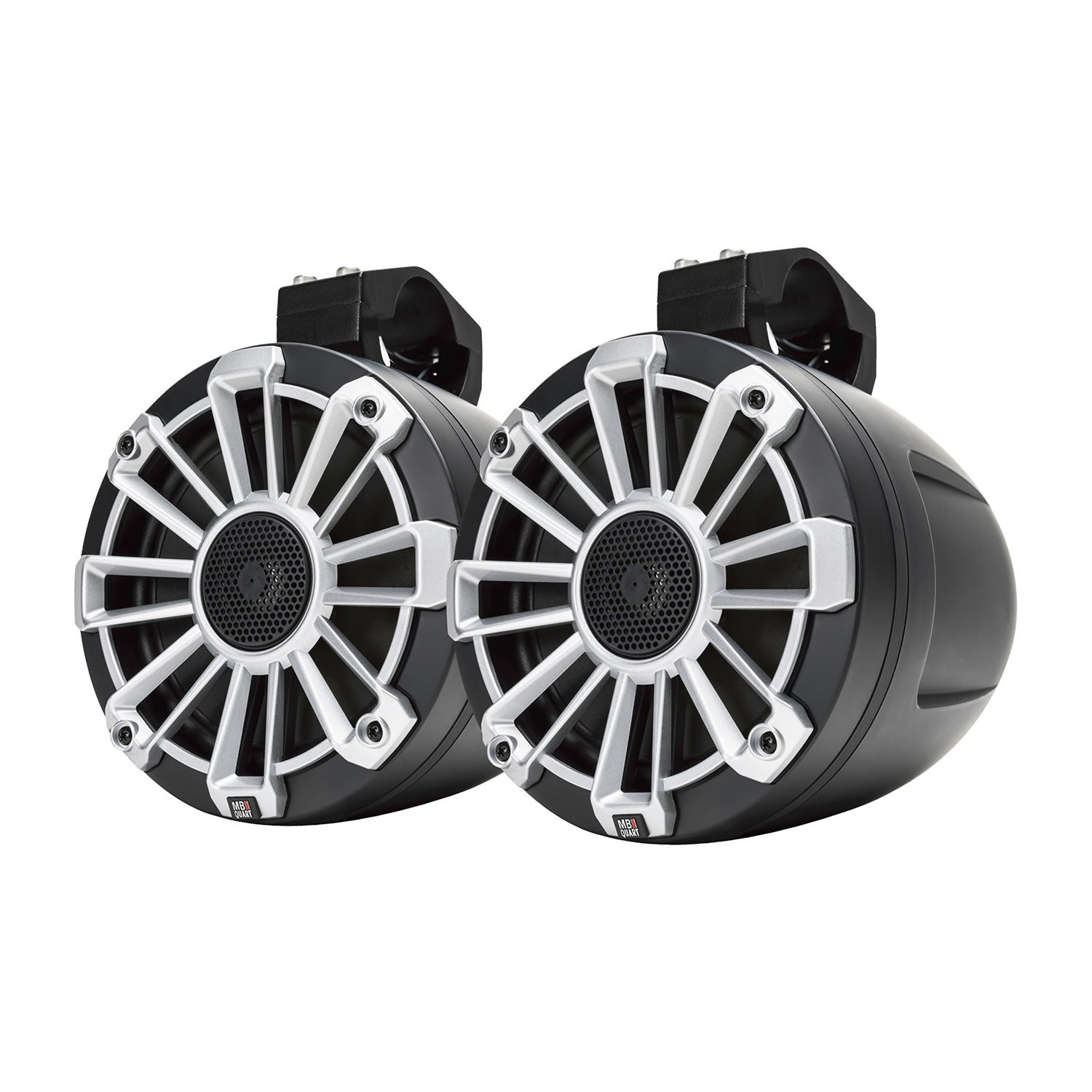 The award winning MB Quart NPT1-116 Nautic Premium waterproof marine certified, 6.5 inch coaxial wake tower (pod style) speaker for boat, RV and off-road vehicle audio installations. Sold in pairs with 3 color grill options included in each box.