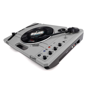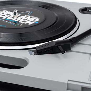 - Comes with 7'' scratch vinyl, 45-mm crossfader, cartridge, and integrated speaker