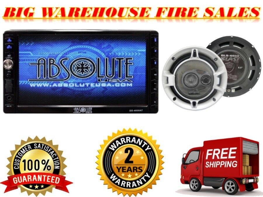 Absolute DD-4000 7-Inch Double Din Multimedia DVD / CD / MP3 / USB/ Player Receiver with Touch Screen System Display and Detachable Front Panel & Absolute BLS6503 3 Way 6.5" Speaker