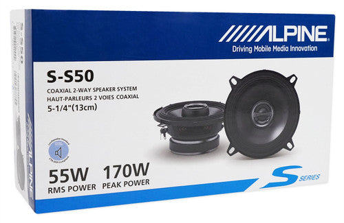 Alpine S-S50 340W Max (110W RMS) 5 1/4" Type-S 2-Way Coaxial Car Speakers