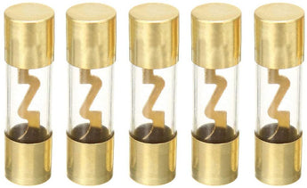 AGU style fuses are very common across car audio and are ideal for small to medium size car audio systems and offer them amperage ratings from 30 to 80 amps. Our AGU packages include 5 fuses that feature an attractive gold-plated finish that ensure the maximum current transfer. If you are replacing an existing blown AGU fuse our fuses are universal and will fit into any other manufacturer's AGU-rated fuse holder.