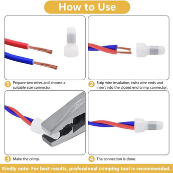 - Ideal for connecting two or More Wires: closed-end crimp-on wire connectors are used to secure electrical connection points safely.