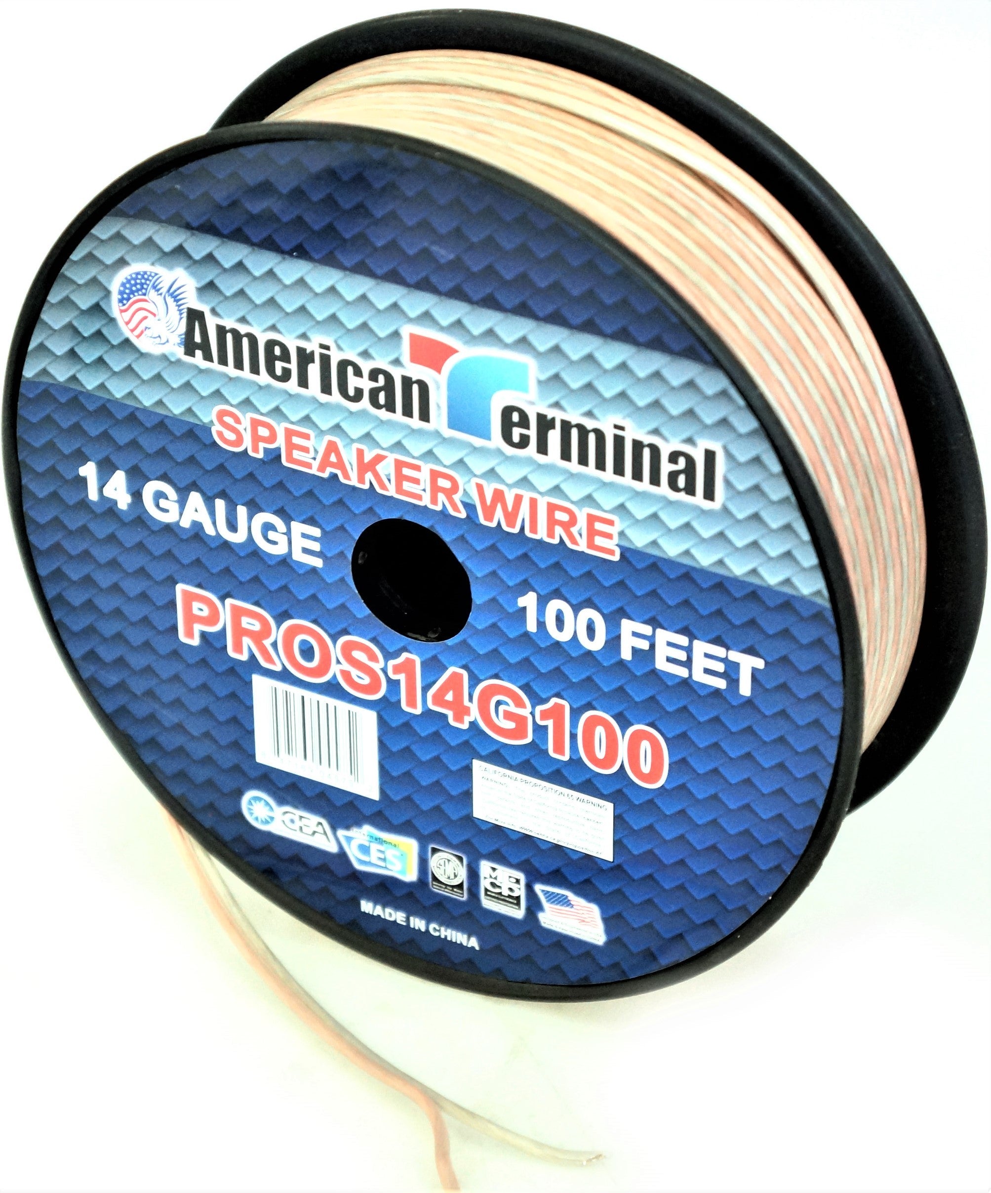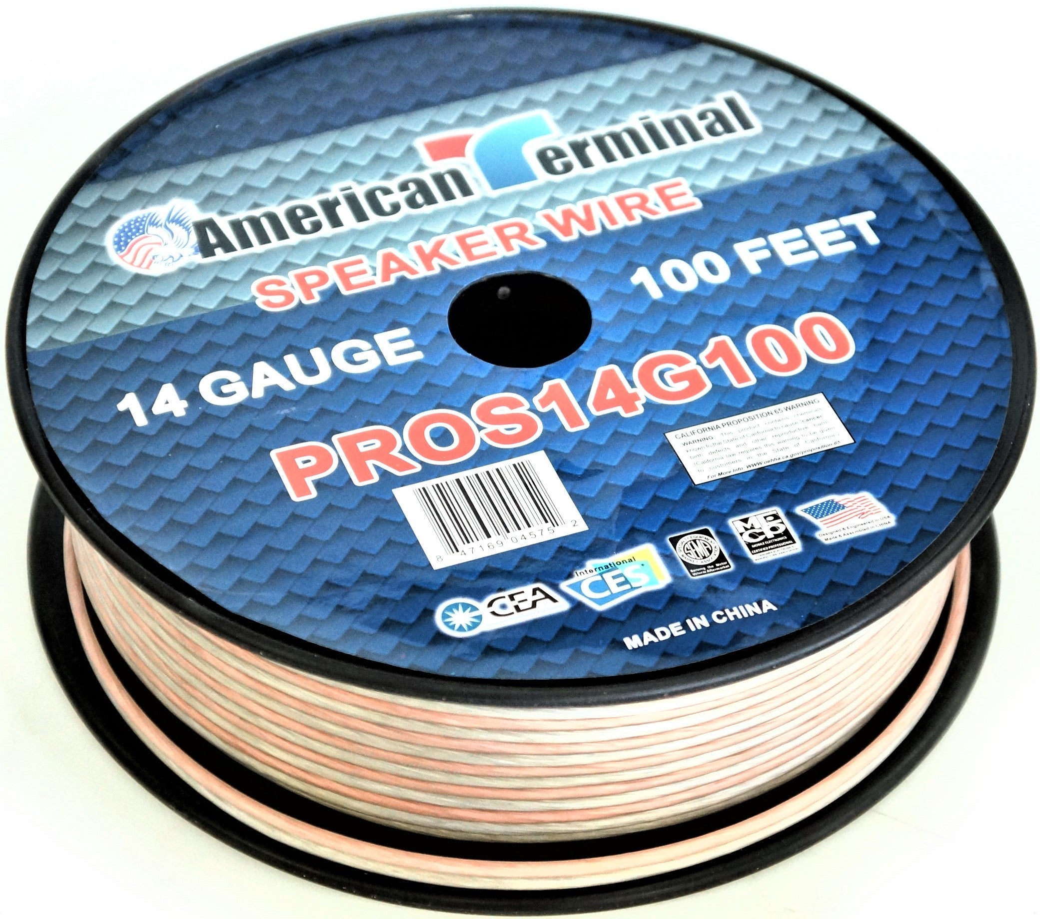 American Terminal PROS14100 14 Gauge Speaker Wire 100' 14 Gauge PRO PA DJ Car Home Marine Audio Speaker Wire Cable Spool