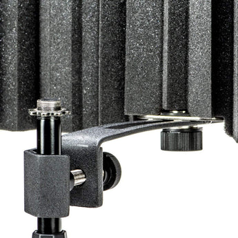 The Acousti-Shield AS34 was developed as an effective accessory for the audio recording professional. When effectively utilized, it can substantially reduce unwanted reflections, echo flutter, and unwanted environmental acoustic interference. A trouble-free design results in an easy-to-use, highly flexible device, while not sacrificing stand-mounted stability. The Acousti-Shield AS34 is constructed from high-quality perforated metal and outfitted with 35mm high-density microcell acoustic foam. The Acousti-Shield AS34 is supplied with mounting hardware to adapt to most microphones - for easy, flexible placement. The Acousti-Shield AS34 is an essential tool for enhanced performance and a vital accessory for the audio recording professional.