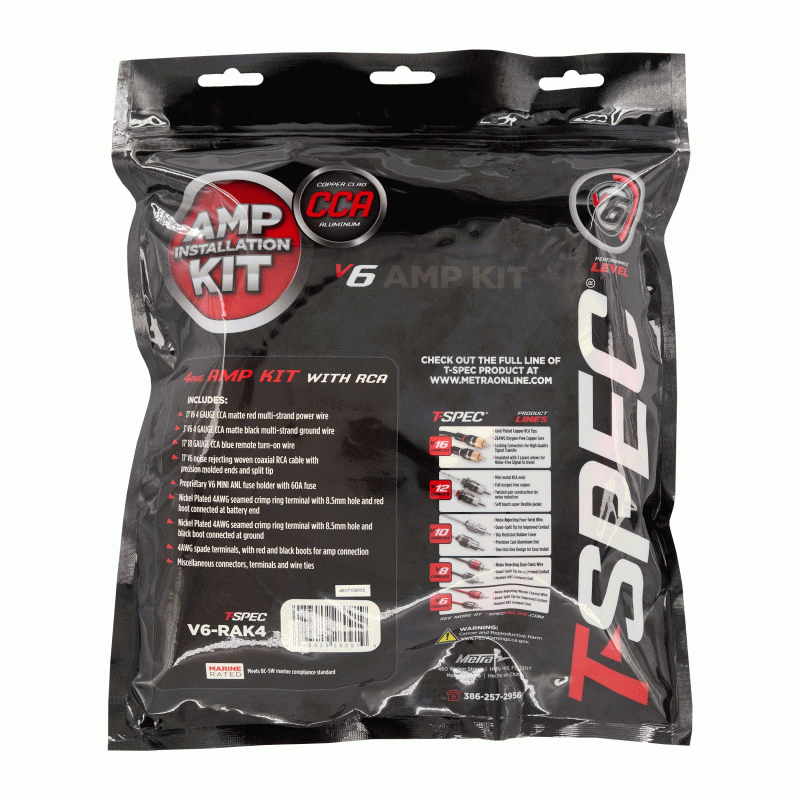 Metra T-Spec V6RAK4 4 Gauge V6 CCA Amp Wiring Kit w/2-CH Marine Grade RCA Interconnect