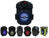 6.5" Portable Active Speaker With Rechargeable Battery 1000 Watts P.M.P.O, Built-In Bluetooth Technology, It Can Stream Music From Bluetooth-Enabled Devices, And Through USB, Or Can Be Connected With A Cable Through The Aux-In Port., USB Card Reader, FM Radio, RGB Party Led Lights, Microphone In 1/4” Jack, Aux-In For Allows You To Connect An External Audio Device, Mode Accent Lighting, Led Screen Display, And Metal Grill-Covered Speakers And Equipped With A Handle And Wheels For Easy Transportation. The wireless speakers Also Has A Microphone Input for Karaoke. The Rechargeable Battery Lasts for Hours, so You Can Stream Music Even In Places Without An Outlet Nearby.
