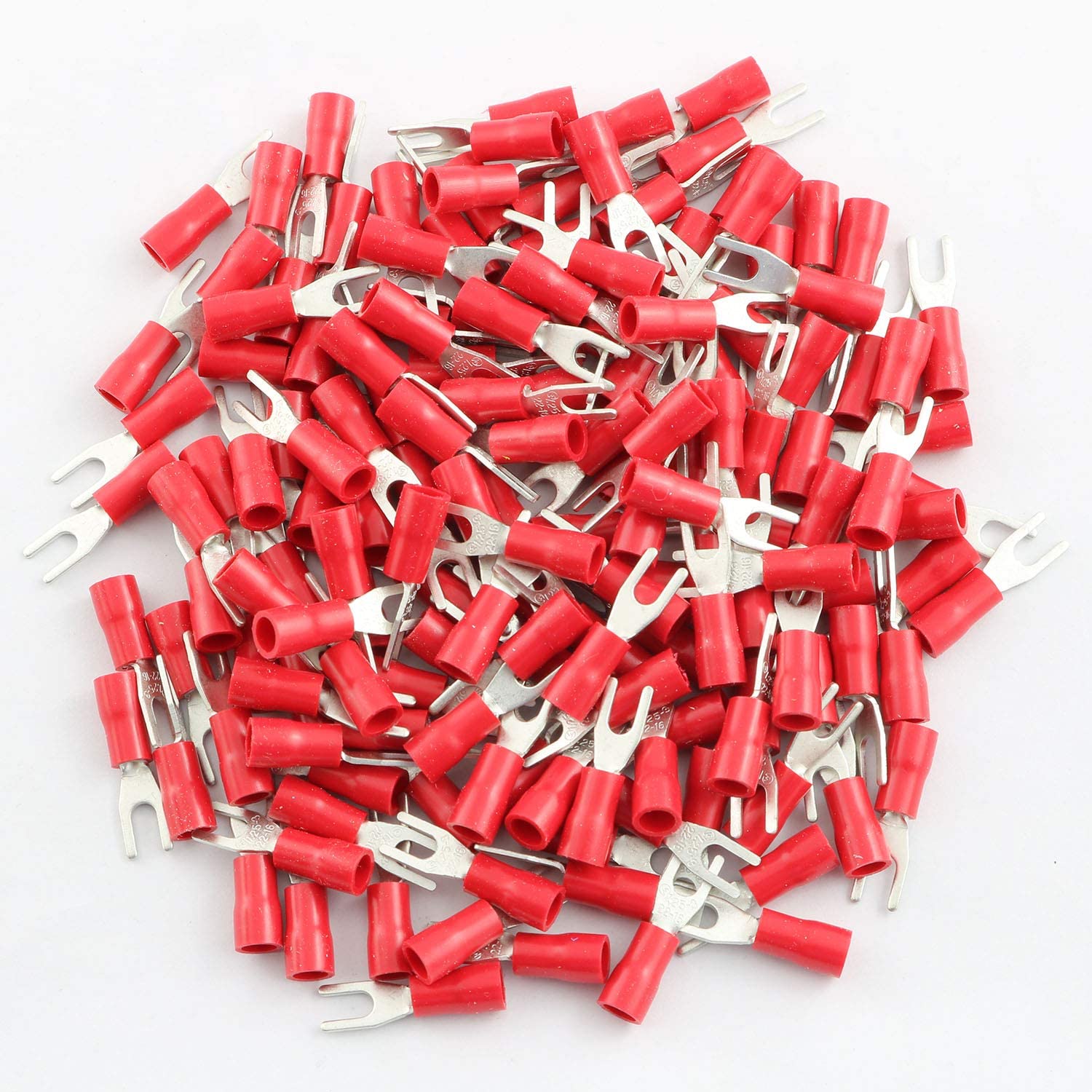 PATRON PSR8-200 200PCS #8 Red Insulated Fork Spade Wire Connector Electrical Crimp Terminal (22/18-Gauge, #8)