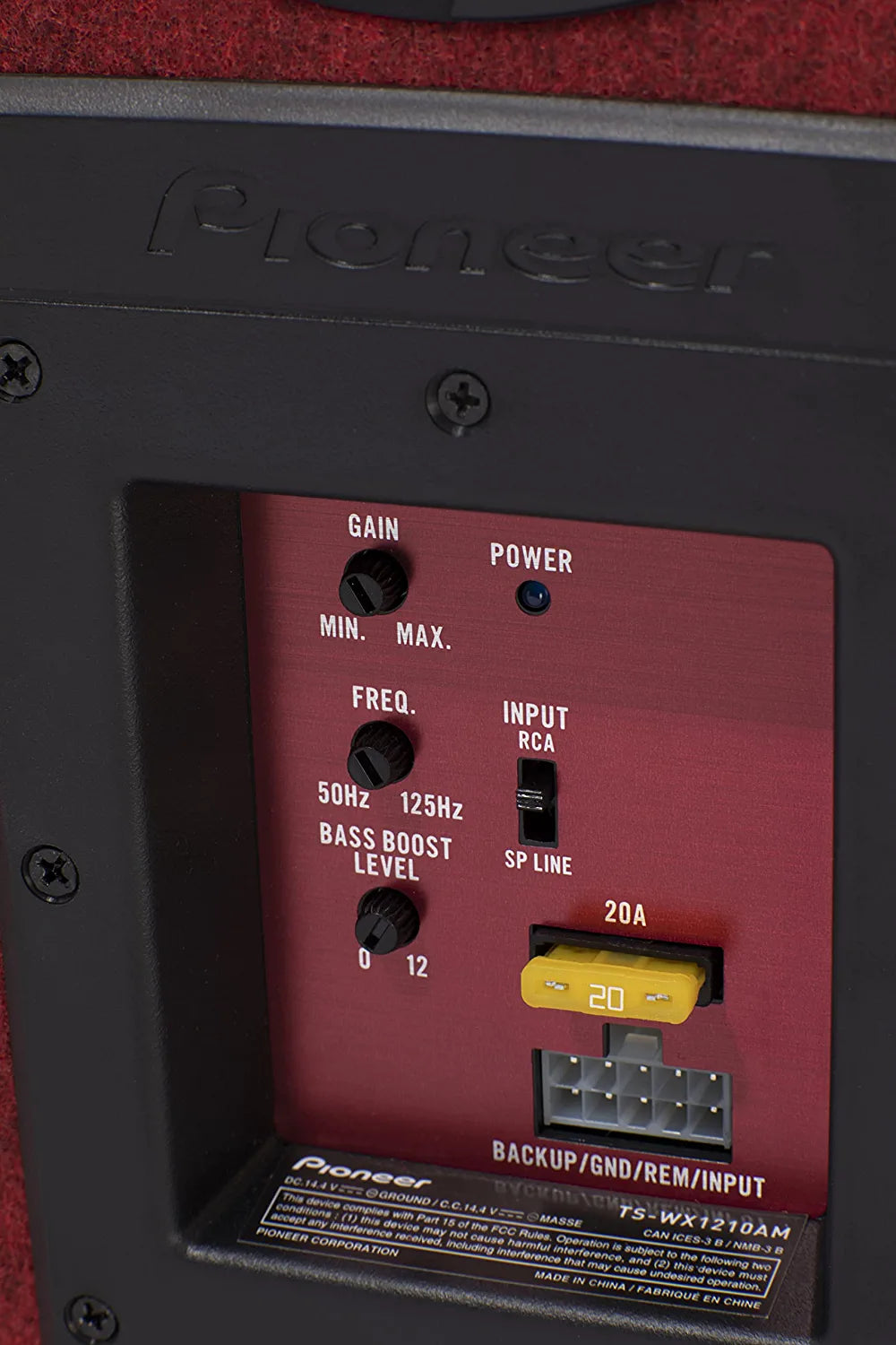 The TS-WX1210AM ported enclosure subwoofer features a strong and lightweight IMPP™ (Injection-Molded Polypropylene) composite speaker cone to enhance your music with deep, rich bass. It also features a Class-D amplifier built into the side of the enclosure to amplify the bass to high volumes. It also makes for a more compact design that fits into tight spaces in today's smaller vehicles. The subwoofer enclosure comes with customizable settings, which include an adjustable bass boost to ensure the user can get the type of bass they want, depending on their own taste in music.