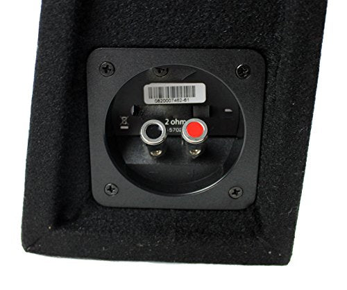 The R2S-1X10 is a 10” shallow enclosure with 200 Watts RMS power handling wired to a 2-ohm load. The enclosure is constructed with 5/8” MDF, covered in high-density carpet, and features quick-release compression terminals.
